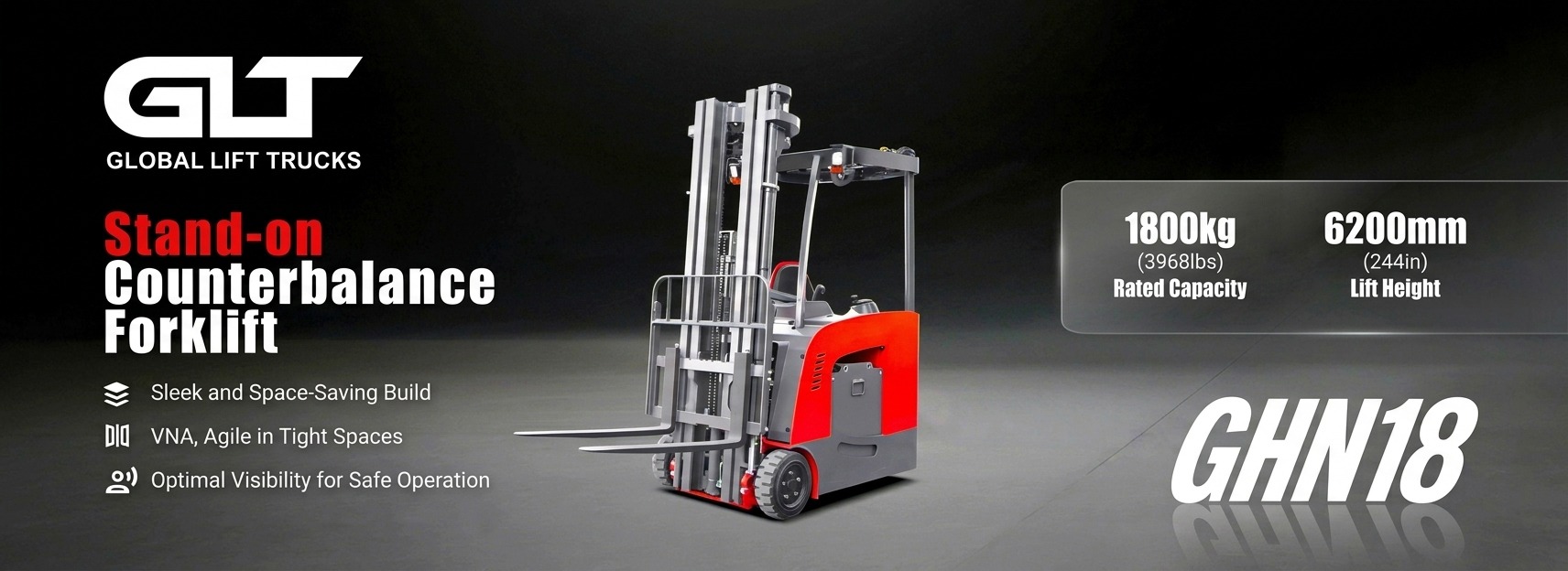 Compact 3-wheel stand-on forklifts for agile warehouse operations.